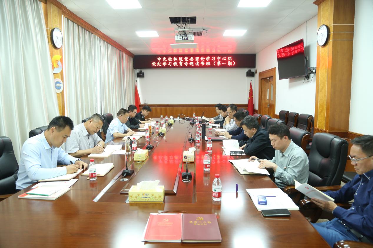 5月6日,,,,,中国有色桂林矿产地质研究院有限公司(简称:中色桂林院)党委理论学习中心组举行党纪学习教育专题念书班,,,,,原原本本、逐章逐条逐字深入学习新修订的《中国共产党纪律处分条例》(以下简称《条例》),,,,,并开展学习钻研。。。。。。。。中色桂林院党委书记、董事长、总司理杨国高,,,,,党委委员、纪委书记高英明划分领学《条例》内容并作重点讲话。。。。。。。。