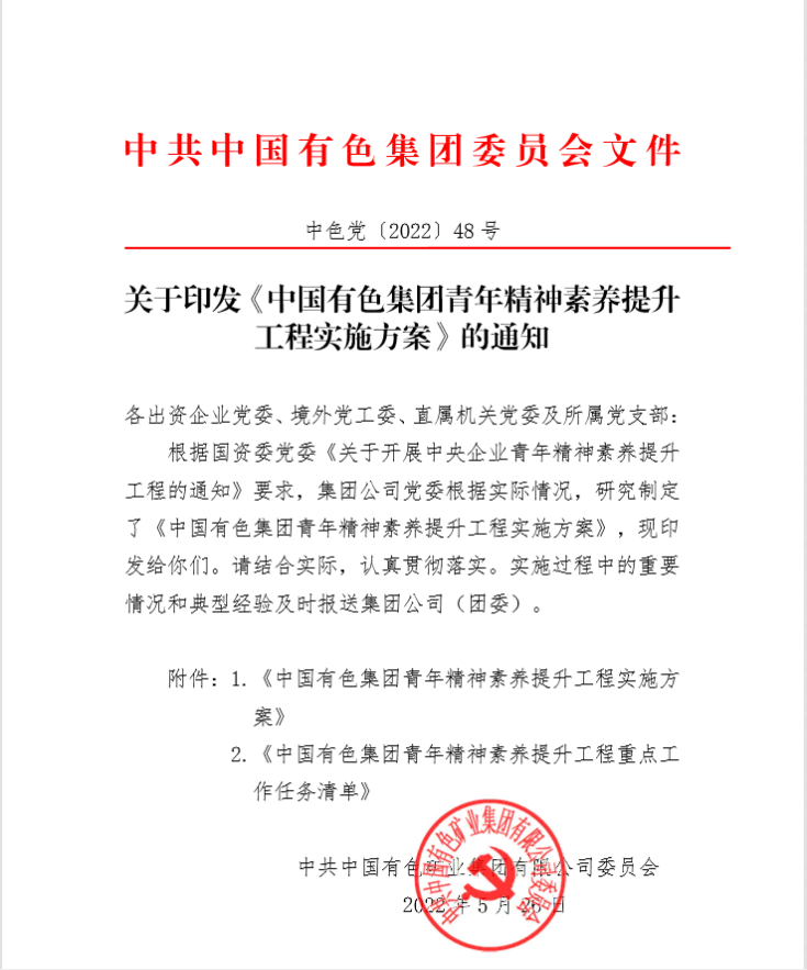 2.¡¶ÖйúÓÐÉ«¼¯ÍÅÇàÄ꾫ÉñËØÑøÌáÉý¹¤³ÌÖØµãÊÂÇéʹÃüÇåµ¥¡·
